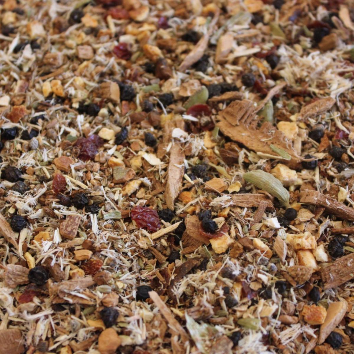 Blended with Reishi, Chaga, Astragalus, Cardamom, Elderberries, Rosehips, Cinnamon, Orange Peel, Ginger, Black Pepper and Anise.
