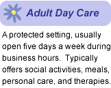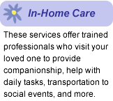 In-home care: Just as the name implies, in-home care involves health care professionals coming into a home to provide services. There are two distinct types of in-home care: companion care and personal care. These are also sometimes referred to as custodial care and skilled care. Companion, or custodial care, includes transportation services, meal preparation, household chores and medication reminders. Personal, or skilled care, can be more involved and may include bathing and hygiene needs as well as assistance with mobility and eating. According to senior living referral service, A Place For Mom, the cost of in-home care usually ranges between $14-$24 dollars an hour, or $112-$192 for a full day.