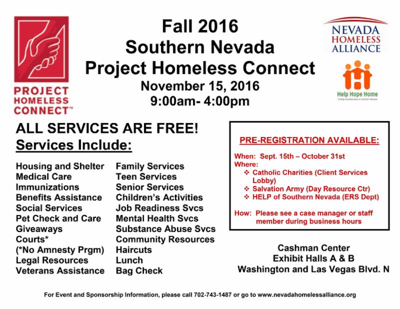 PHC Pre-registration for clients begins tomorrow, Sept. 15th at Catholic Charities, Salvation Army, Help of Southern Nevada, and WestCare Please share the event flyer with those you serve! Interested in pre-registering clients at your agency? Please contact Jimmy Rolson,