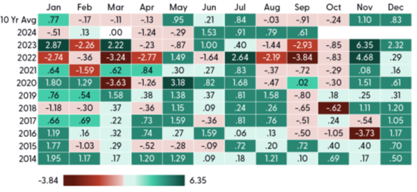 While we wait for the presidential election to play out, muni investors may have to wait a few more months before potential seasonal headwinds abate. Generally, after the summer doldrums, new issuance tends to pick up with September and October as heavy supply months. In the 10 years from 2014 to 2023, September and October ranked highest among average tax-exempt municipal supply months, as issuers sought to complete borrowing plans ahead of the winter holidays. The increase in supply has generally put downward pressure on prices (upward pressure on yields) with September being the most challenging month. Of the past 10 Septembers, only three have generated positive returns for the index. October has been slightly better, with four out of 10 Octobers generating positive returns. However, average tax-exempt supply typically falls to below-average levels from November to January. The reduction in supply has tended to be good for muni returns. Since 2014, the average return for the muni index has been positive from November through January. The silver lining? If history repeats, bond yields may stay elevated, giving muni investors another opportunity to lock in current yields before yields potentially fall throughout the Fed’s rate cutting cycle.