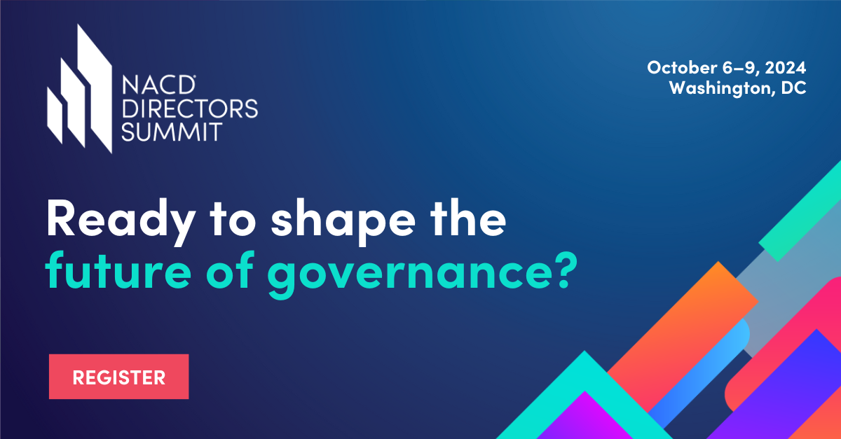 - Rethink Strategy: Engage with fellow NACD Directors Summit attendees and work together to rethink strategy, gain practical tools, and actionable ideas for your own boardrooms.