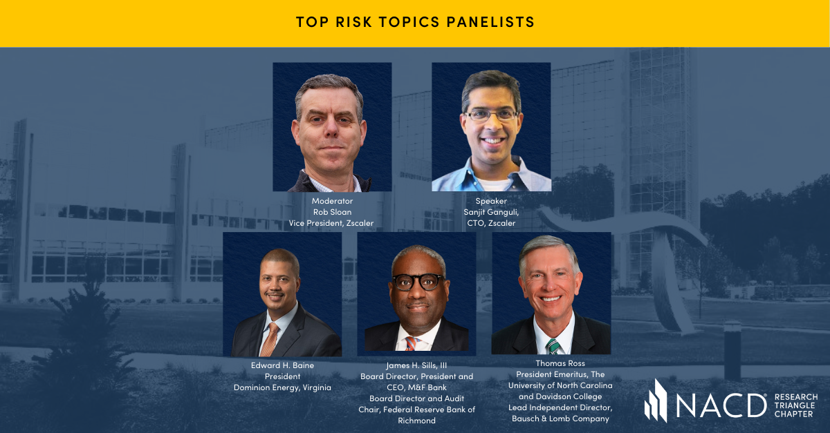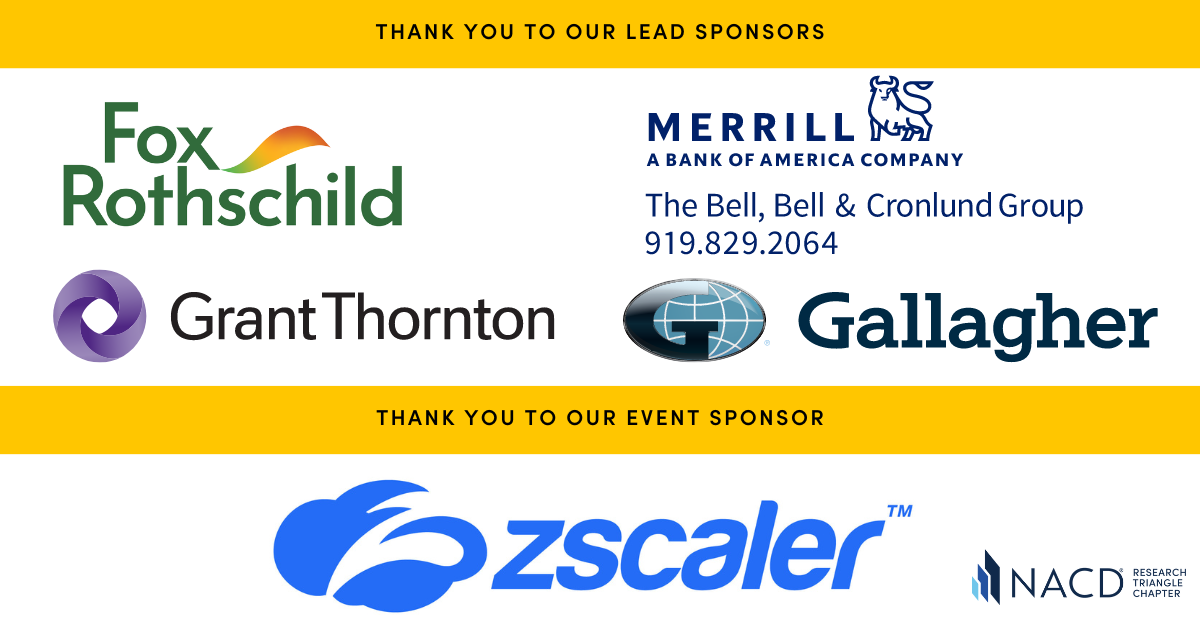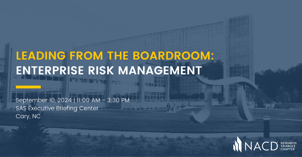 Join the NACD Research Triangle Chapter for our signature Leading from the Boardroom program, Enterprise Risk Management, to explore in-depth how leading organizations design their frameworks and tackle today's most pressing risk challenges. | |
