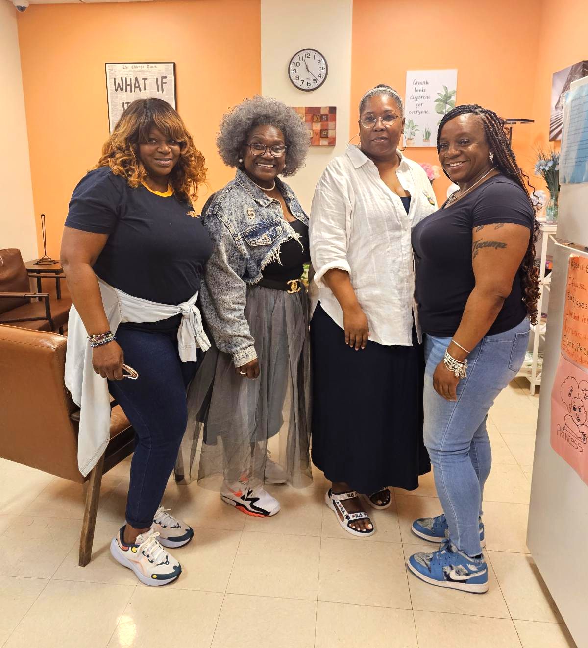 (l to r) Admissions Specialists Malaika Roach-Brown, Sylvia Sparks, Leigh Coulter and Monique Williams. Honorable mention goes to Gail Ousley who wore blue and took this photo!