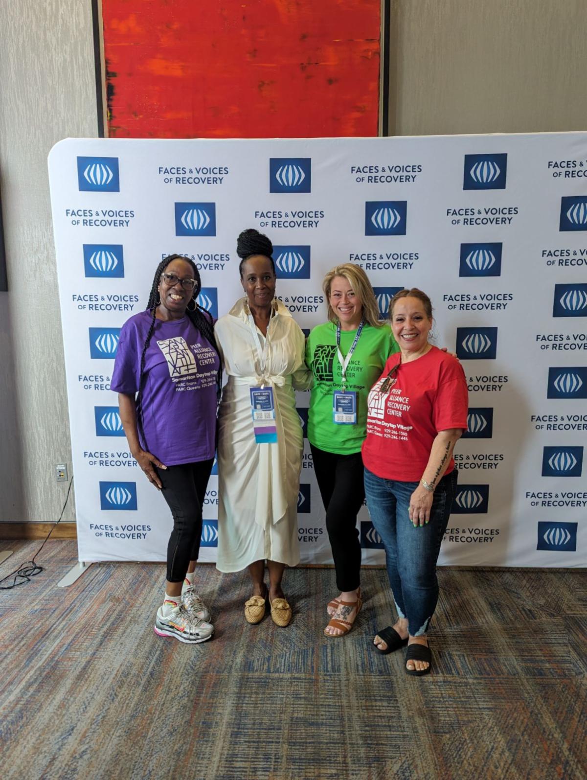 (l to r) Annette Evans, Assistant Director of PARC Bronx; Angelia Smith, FOR-NY Executive Director; Patricia Benecke, Assistant Director of PARC Queens; and Jessica Feliciano, Sr. Director of Recovery Services for Samaritan Daytop Village.