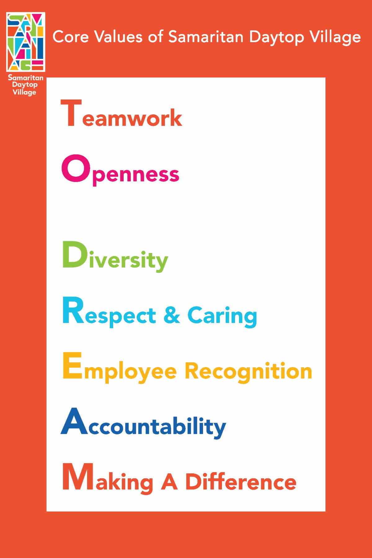 If you have ideas, suggestions, and feedback about the new Core Values, email values@samaritanvillage.org.
