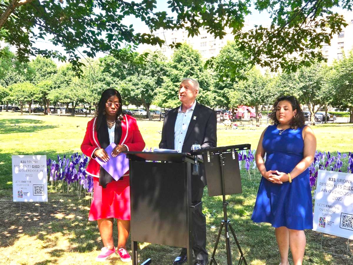 On June 13, we held a Bronx Opioid Overdose Awareness Ceremony with Bronx Borough President Vanessa L. Gibson at Joyce Kilmer Park. Speaking at the event were our President & CEO Mitchell Netburn, Borough President Gibson, State Senator Nathalia Fernandez, and Assemblymember Landon Dais.