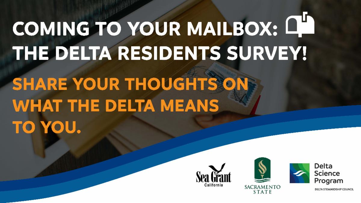 Invitations to participate in the Delta Residents Survey have been sent via postal mail to all households in the interior Sacramento-San Joaquin Delta and a sample of households in the urban and suburban Delta. These letters will provide instructions on how to access the survey online or request a hard copy by mail.