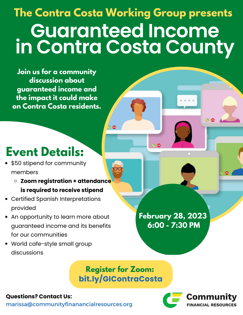 Join us for a community discussion about guaranteed income and the impact it could make on Contra Costa residents.