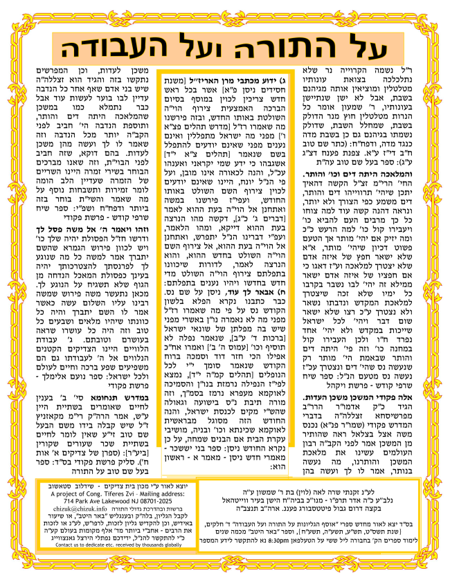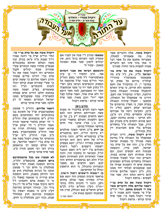 ספר אוסף הגליונות "על התורה ועל העבודה" תשעח