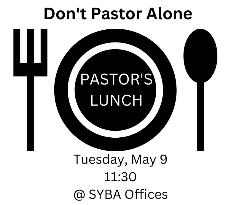 Please plan to join your fellow SYBA pastors for monthly prayer. All pastors welcomed - senior, youth, associate, worship, etc.