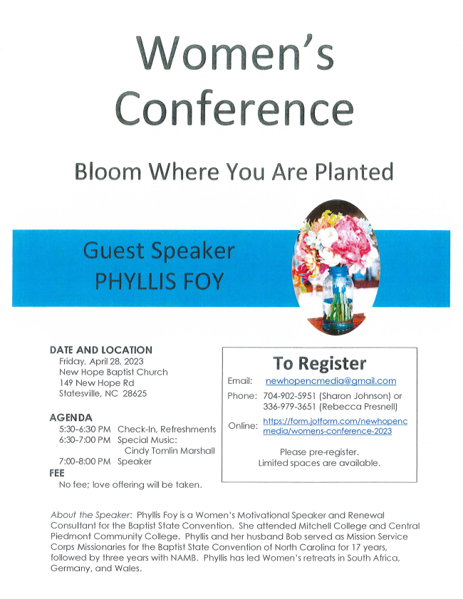 Thank you to the NC Baptist Foundation for sponsoring this event.