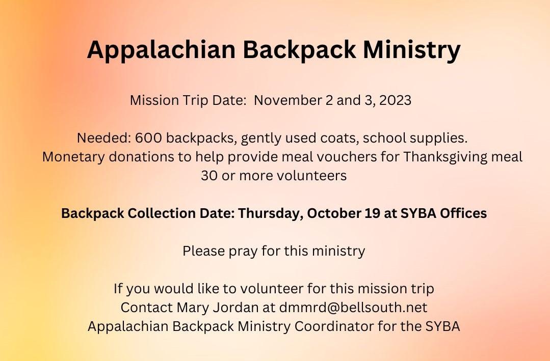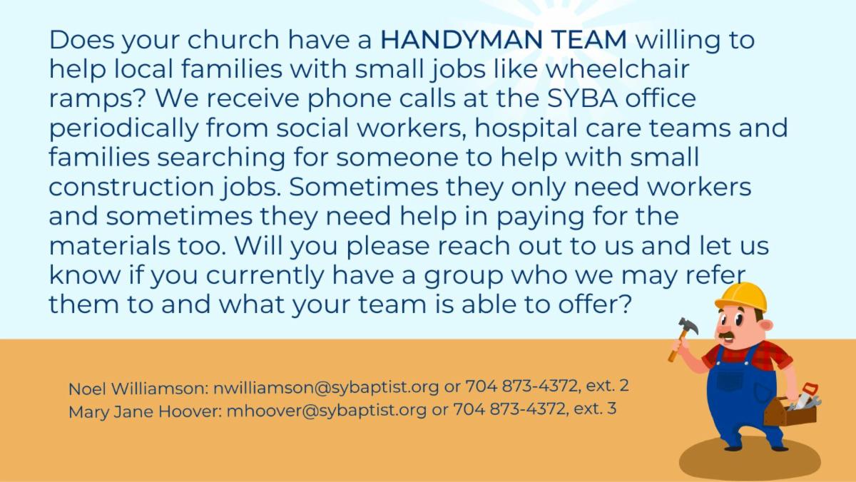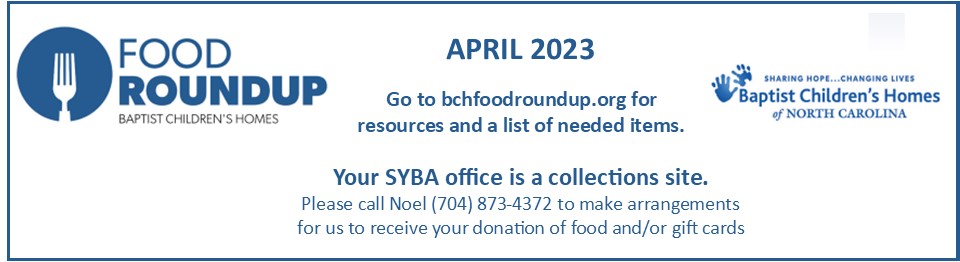Please send your information to Shelley at swilliamson@sybaptist.org and we will include it in the next newsletter if the publishing dates of the SYBA newsletter work with your event.