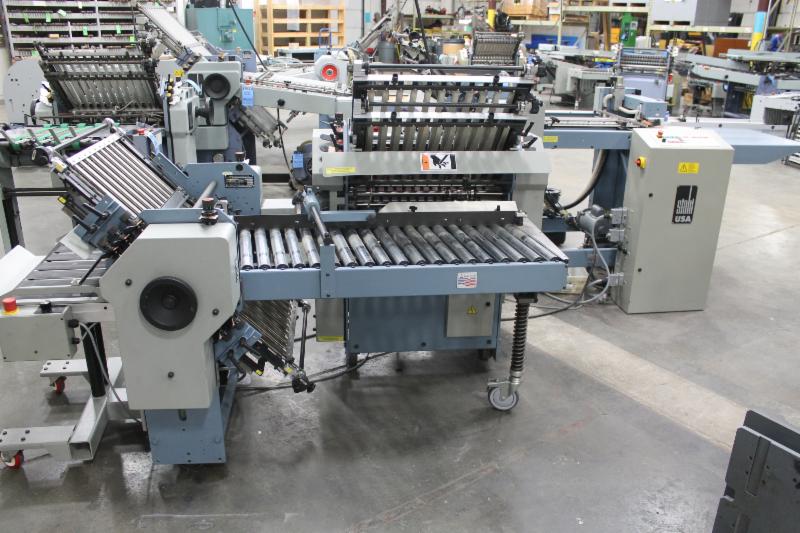 26" x 45-1/2" Round continuous feed buckle folder with 4 zero make ready fold plates in each unit.