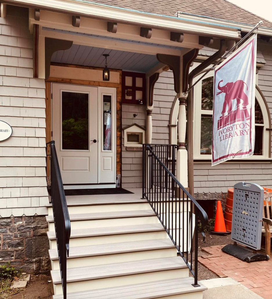Thanks to the generous donation of the former Ivoryton Congregational Church, the library was able to replace the original steps, add a new railing and door, and repair some damage around the porch. An easier entrance was the number one request from a survey sent out to our members in early 2023. With plans from architect Denise VonDassel, Riggio and Sons contractors, and a Grayson Metal railing, we've come up with what we feel is a beautiful result.