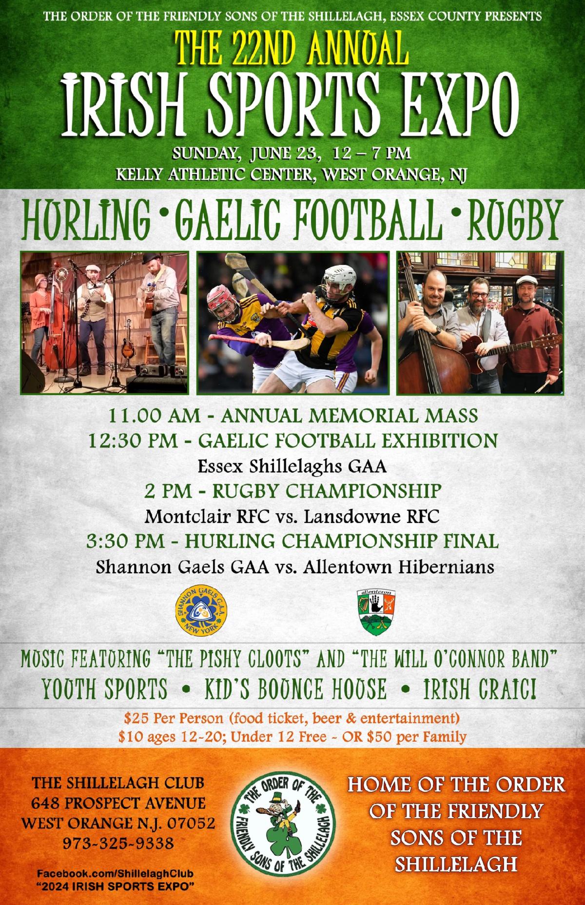 The Friendly Sons of the Shillelagh will host their 22nd Annual Irish Sport Expo on Sunday, June 23 at the Shillelagh Club. For the very first time, the Essex Shillelaghs GAA will participate and we will mark the occasion to celebrate the conclusion of our inaugural Spring Season.