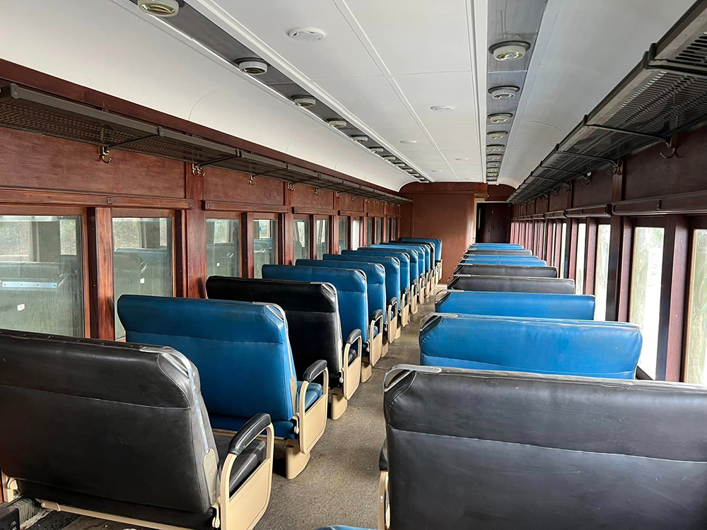 The coach includes original mahogany interior panels as well as a concession area, which the Bytown crew fabricated and installed based on the outline of the original smoking room. 4977 seats 62 passengers.
