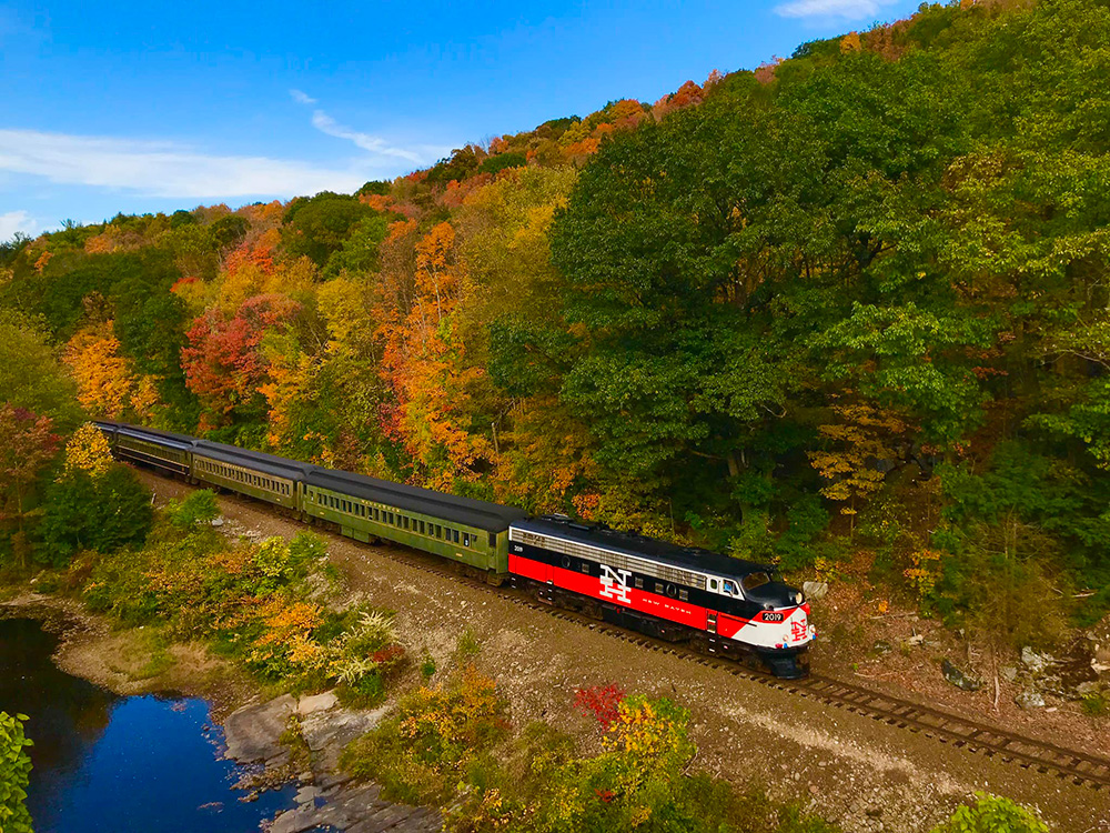 The Naugatuck Railroad operates passenger excursions throughout the year on our scenic 19.6 mile line between Waterbury and Torrington, CT. Proceeds from excursions directly benefit the Railroad Museum of New England, as well as the preservation and restoration of New England's railroading history. |