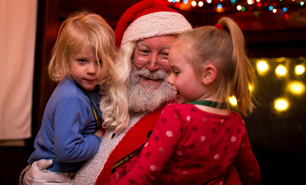 Our nighttime departure features a festively decorated train, illuminating each car inside and out. The Northern Lights Limited heads to Santa’s Workshop to pick up Santa and Mrs. Claus, who will visit each boy and girl on board to present them with a bell and a special gift. Santa’s Elves will also be on board to keep everyone entertained.