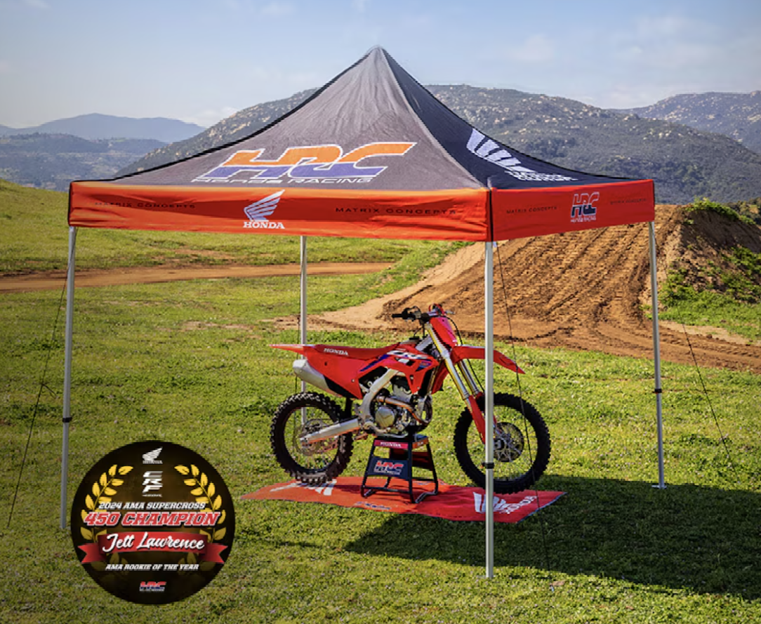 Buy a Honda CRF - Get a Free Team HRC Canopy, Bike Stand, and Mat + we're throwing in a free set of the all-new 100% Accuri Donut Goggles inspired by Jett Lawrence.