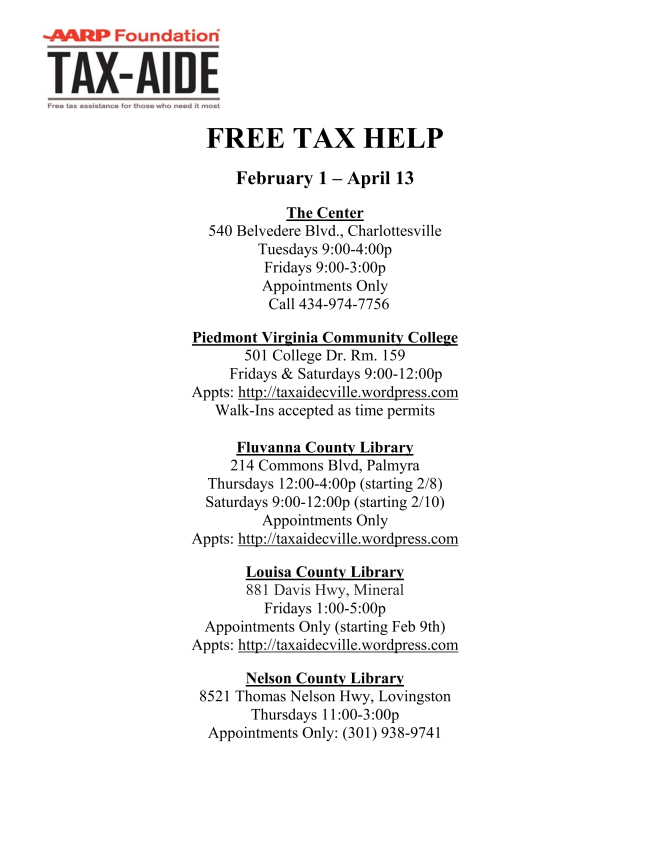 Call (434) 842-9273 or (434) 589-1623 for information.