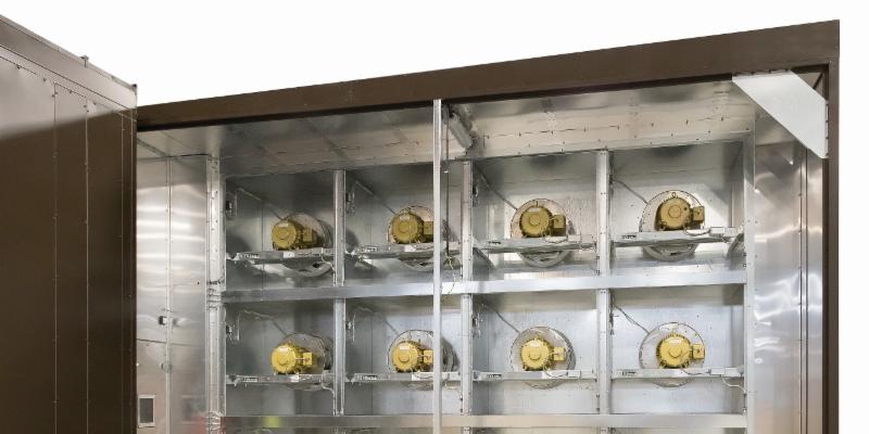 The solution was to retrofit a FANWALL in place of the vaneaxial fans. A FANWALL retrofit, with its “building block” assembly style and customizable dimensions, permitted easy assembly into the supply fan plenum, and was built in two sections matching the existing internal dimensions of the air handler.