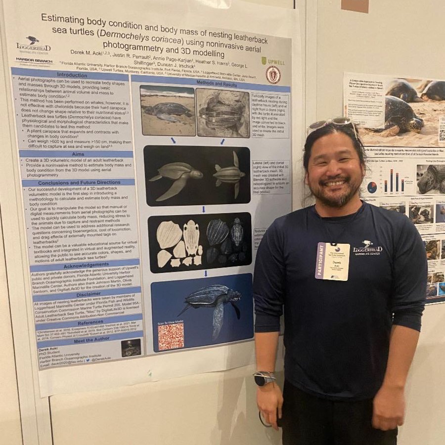 Derek Aoki, doctoral student, FAU Harbor Branch Oceanographic Institute, presented his research on leatherback sea turtles at the 41st International Symposium for the International Sea Turtle Society in Colombia.