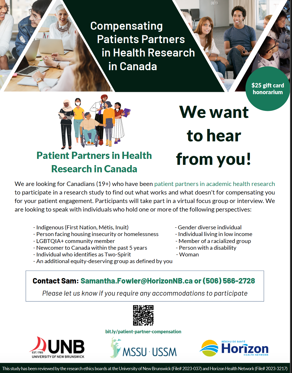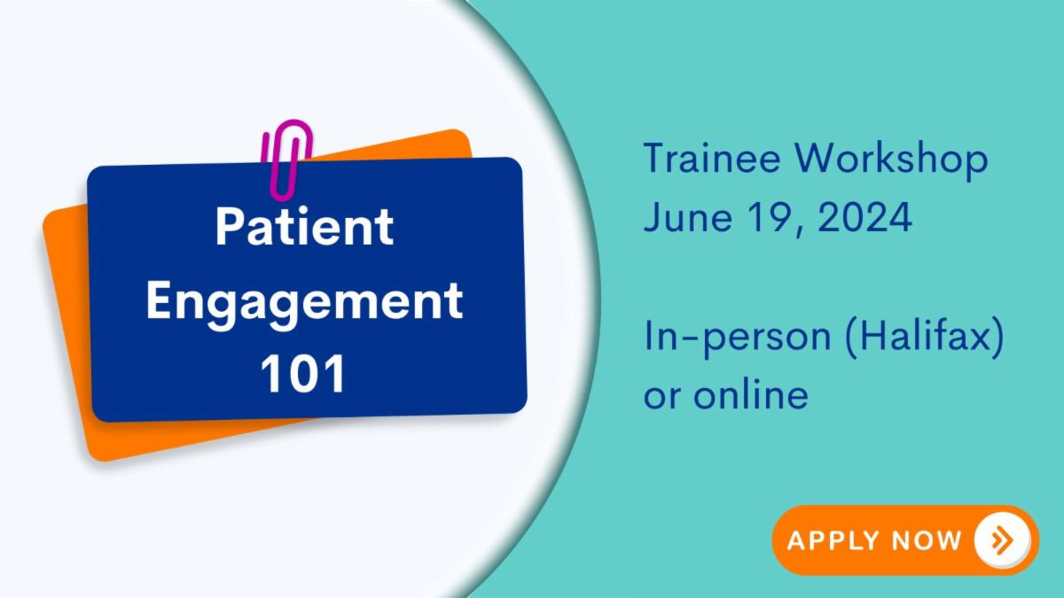 Successful applicants will be given the opportunity to attend the Patient Engagement in Research 101 Workshop in Halifax, NS.