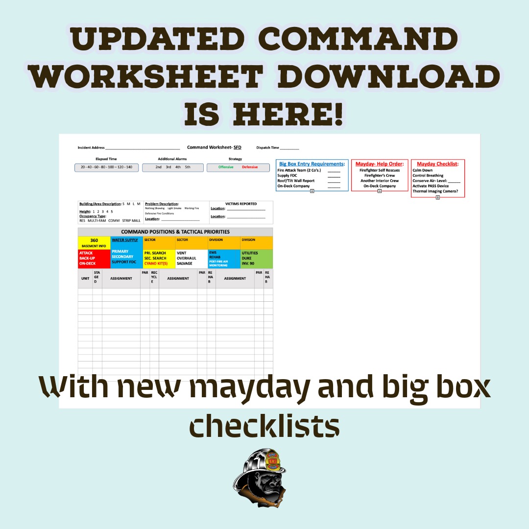 It's here! The Updated Command Worksheet is ready for download. We've got new checklists for mayday and big box events. Click here to get yours!