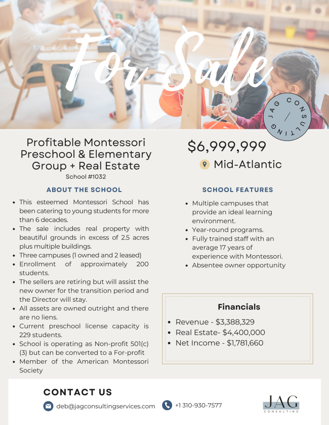 This remarkable chance to acquire a piece of Montessori educational heritage is an opportunity not to be overlooked. Seize this moment to secure an educational facility that embodies Montessori principles, and embark on a journey to shape the future for generations to come.
