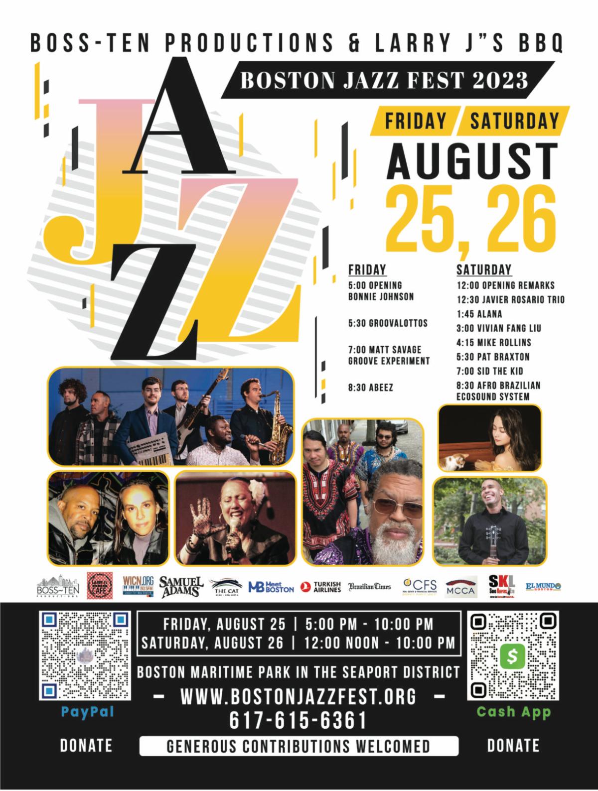The 13th Annual Boston Jazz Festival will be held on Friday and Saturday, August 25-26, 2023 at Maritime Park in Boston’s Seaport District.