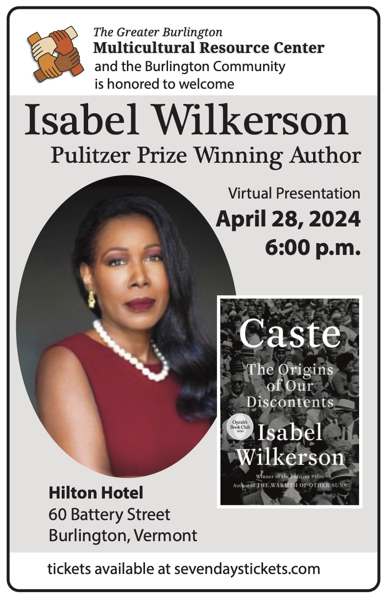 More information at: https://vermontbiz.com/event/april/greater-burlington-multicultural-resource-center-welcomes-isabel-wilkerson