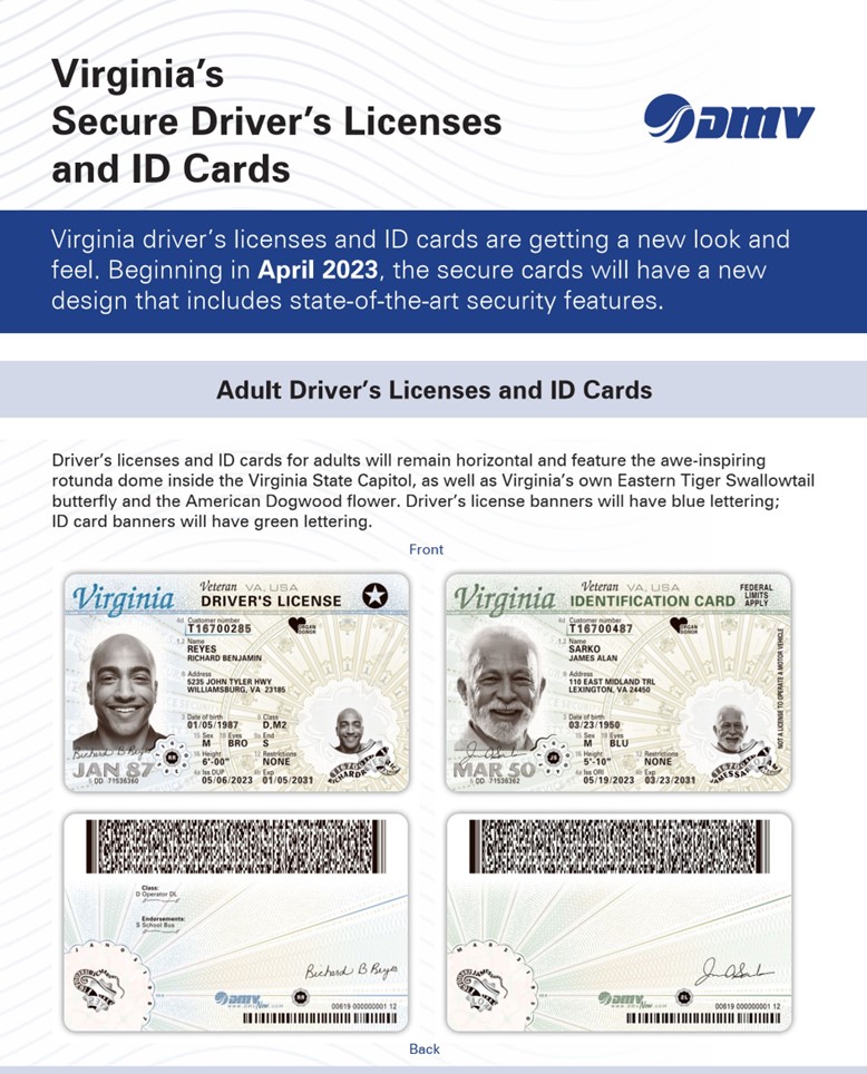 Starting April 24th, Virginia DMV began issuing newly designed driver's license and ID cards. In best practice the design is changed about every 10-15 years to incorporate the next generation of enhanced security features.