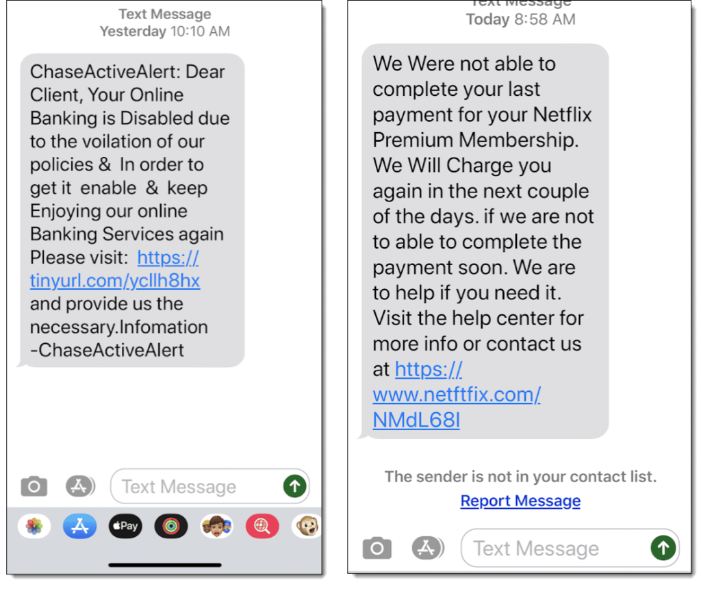 - They use common, well-known companies most individuals use on a daily basis such as Amazon, UPS, Netflix, Apple, financial institutions, and government agency - IRS, Social Security.