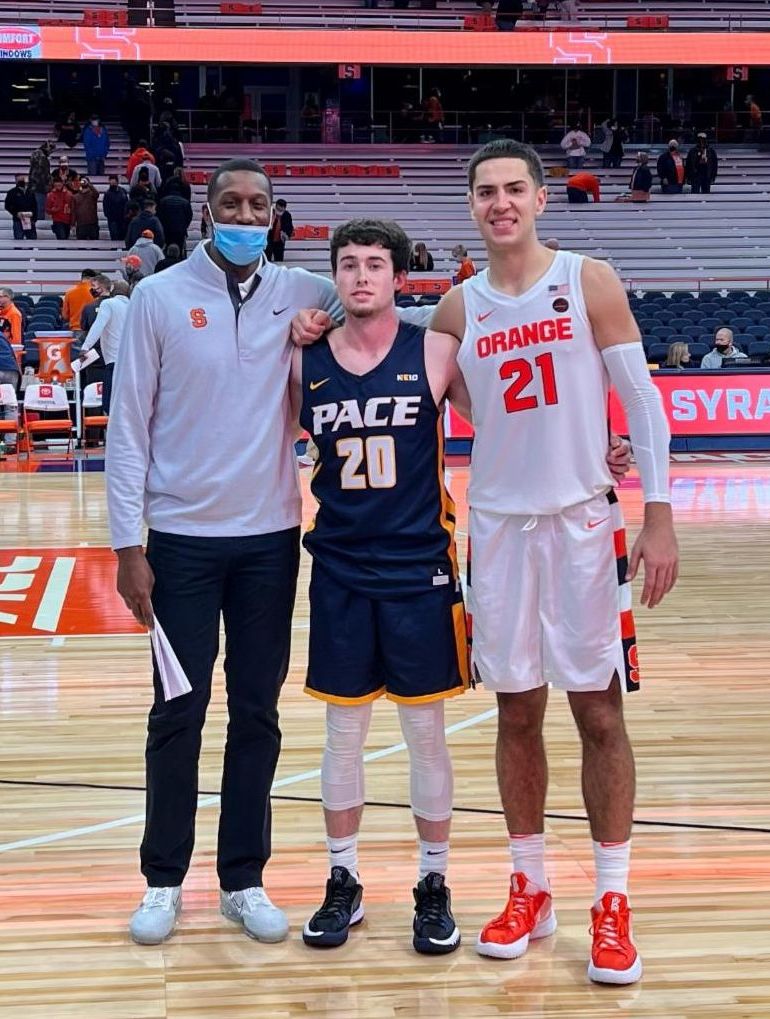 Demetris Nichols '03 has a new role as a graduate assistant for the Syracuse University basketball program and helps coach fellow Saint Cole Swider '18. Cole got to play against his old Saints teammate Matt Constant '21 recently.