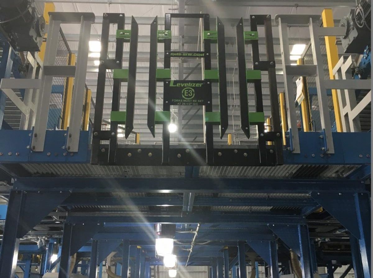 Pallet lifted to mezzanine level