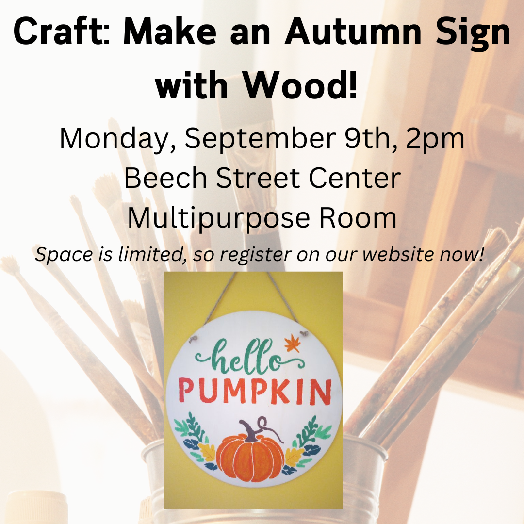 Rachelle Toth, crafter extraordinaire will be here to teach us how to make a a wooden autumn sign for your home or office! Space is limited, so please make sure to register!