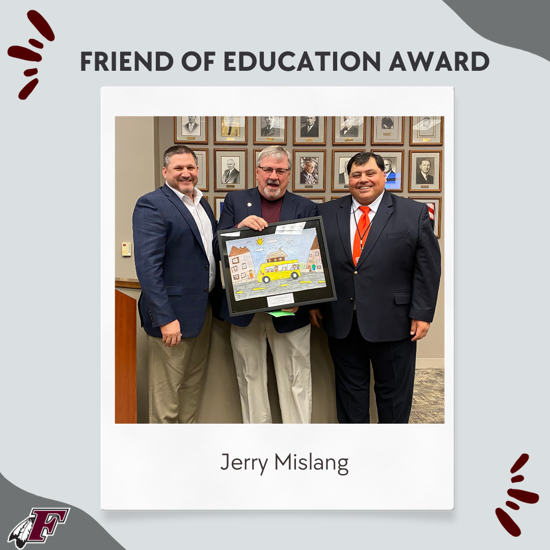 The Friend of Education Award was established to recognize unique contributions by individuals or organizations to the education of the children of Menomonee Falls. Former art educator and administrator Bill Pierce initiated the award, and former science teacher Tom Bauer continued the tradition of the award.