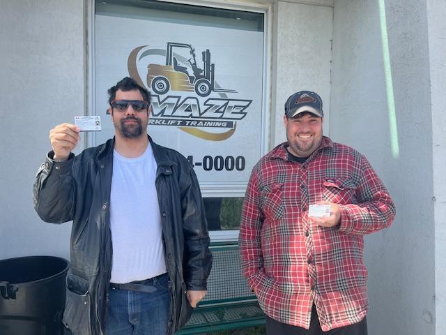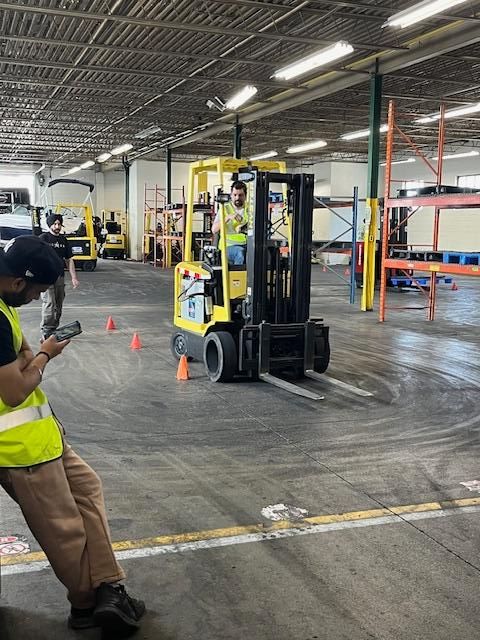 | | Aaron and Philip have successfully completed the LegUp to Material Handling Course and were interested in pursuing additional specialty training on forklift operation and safety. The training consisted of a half-day in-class session in Mississauga where they learned about battery maintenance, propane cylinder testing, safety checks, and load restrictions, followed by a written test to assess their knowledge. In the afternoon, they had hands-on experience operating forklifts, practicing driving, moving in different directions, and using various controls to adjust the forks in tight spaces. After additional training and practice, both Aaron and Philip passed the final test. We congratulate them on their achievement and look forward to seeing their newly acquired skills in action (see below photos from the training). | |