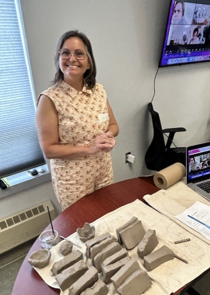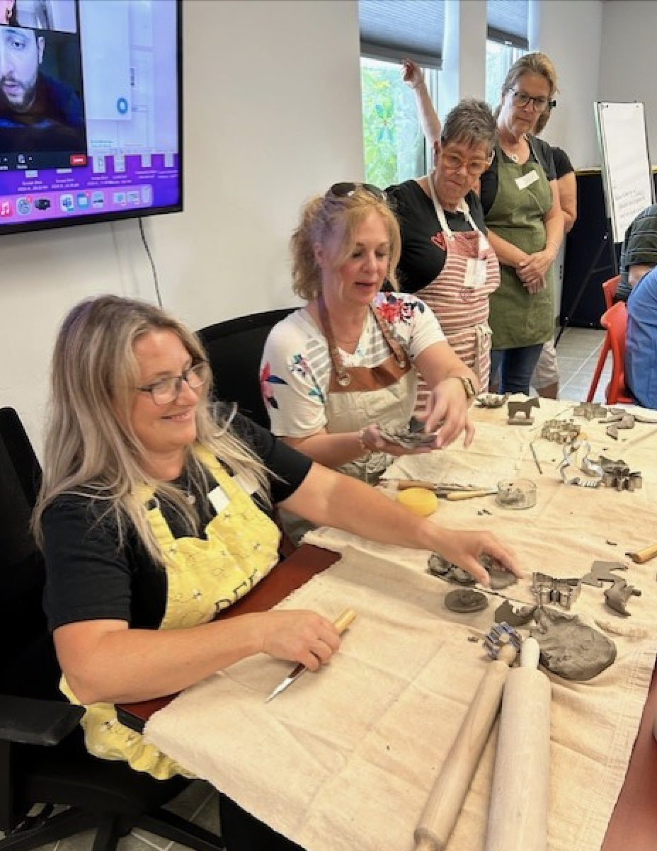 The Pottery teacher is Wendy Dodd-Kellam, who owns and runs her own Pottery Studio called HONEYHILL! Wendy will bring her 'studio' to the Resource Centre.... (along with a few experienced volunteers). Wendy has lots of experience with many tools, cutters, rollers to help each person create unique, one-of-a-kind pieces of pottery. See photos below.