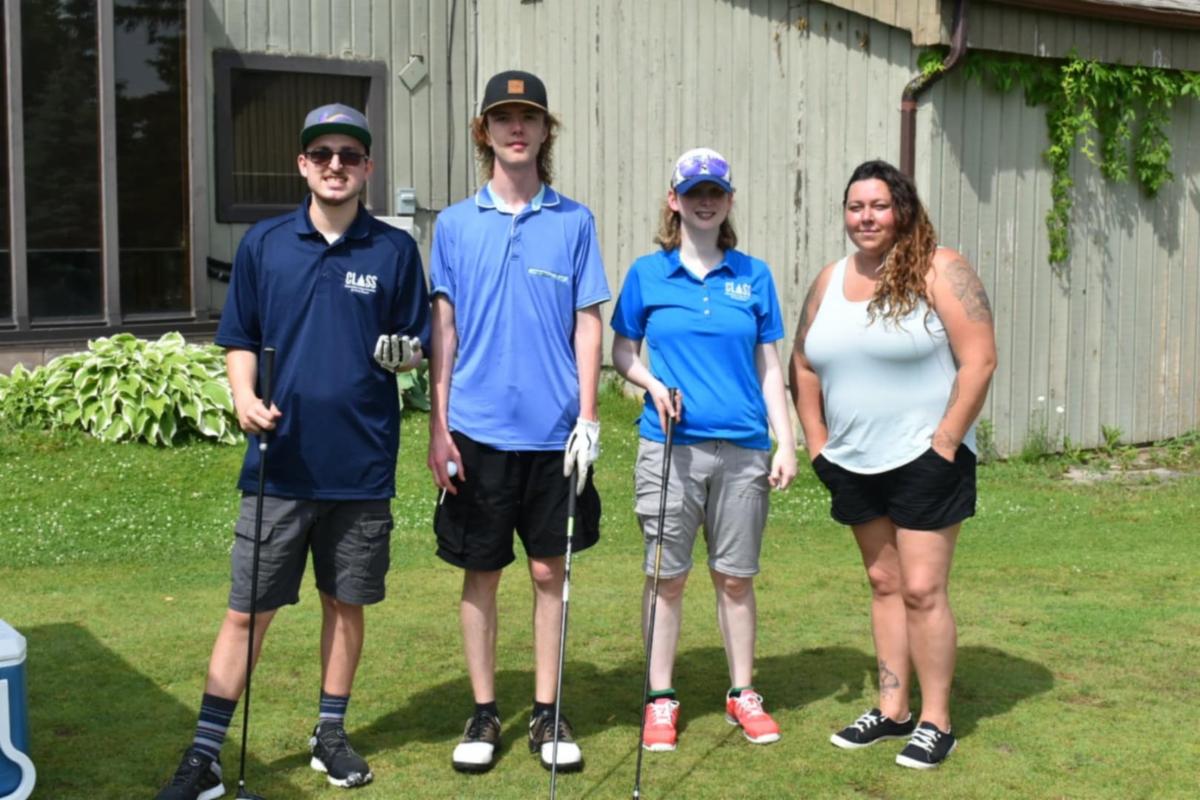 | Photo above: Adam, Volunteer Wesley, Krista and support staff Alexandra at the golf tournament. | |