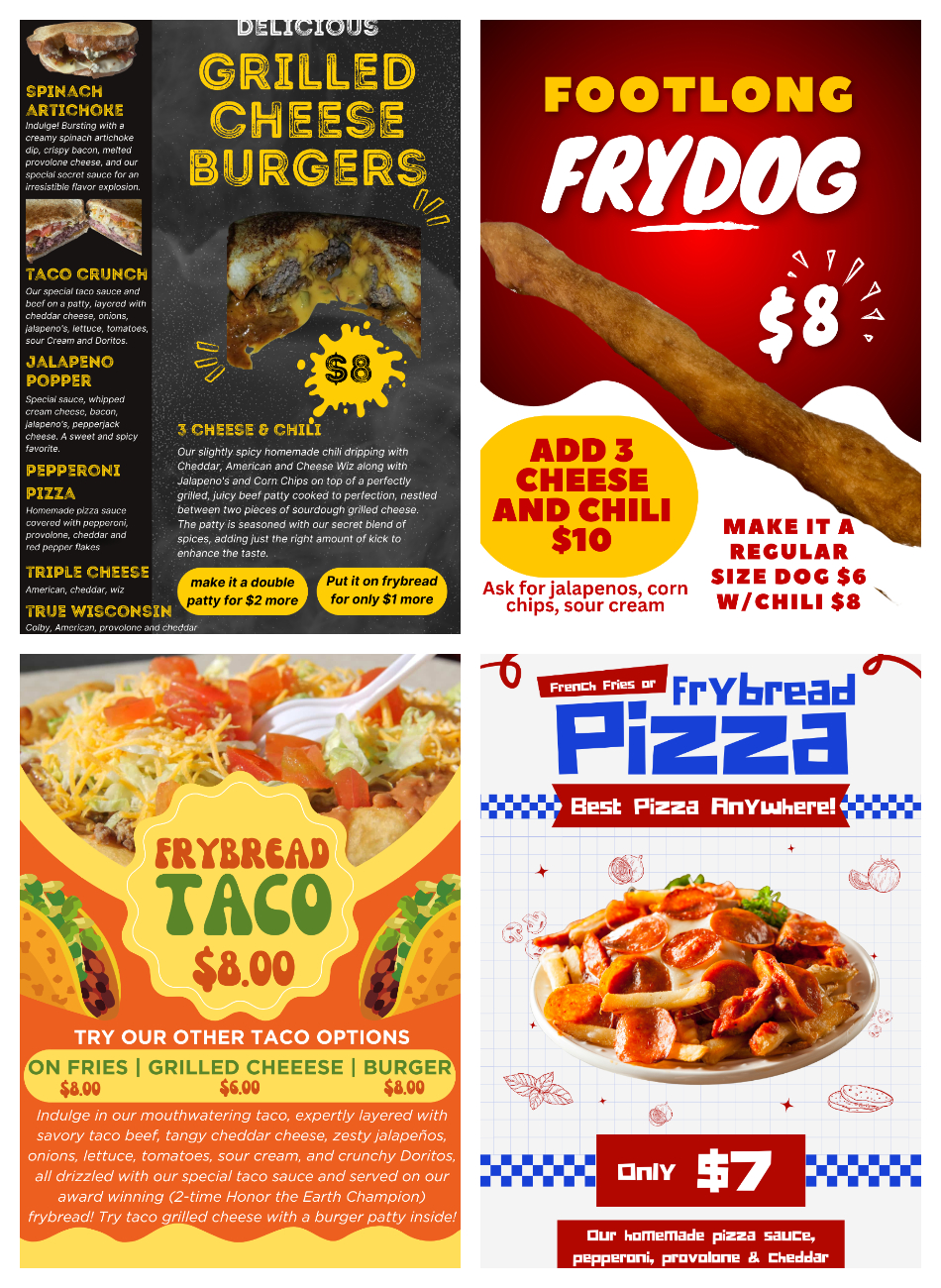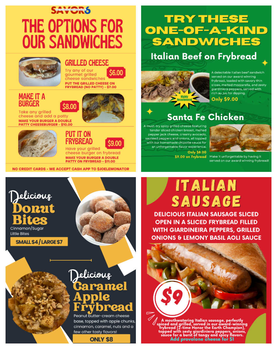 Savor 6 Food Truck and Squeezer's Lemonade will be set up at the LCO Country Store through the July 4th Weekend, from July 3rd till July 7th. Our menu items will include all the flyers below! Stop by for some delicious flavors to savor, including our 2-time Honor the Earth champion frybread!