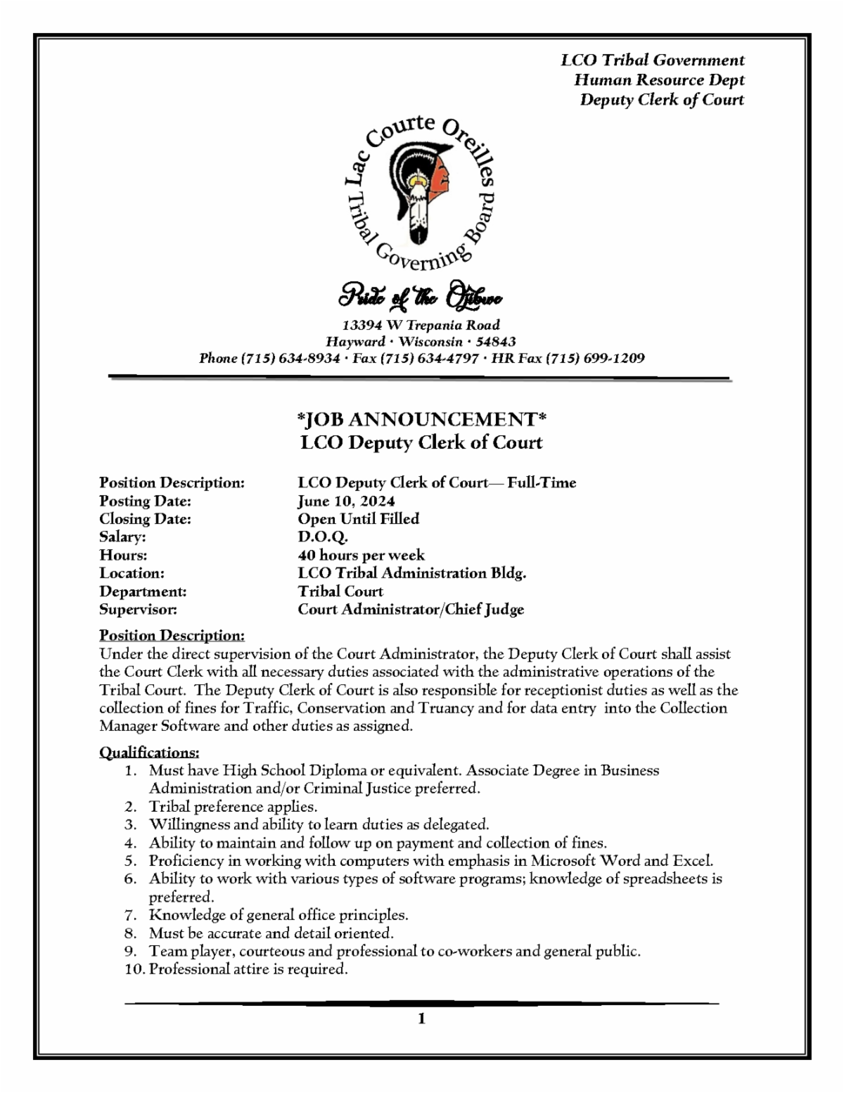 Currently over 100 job opportunities here at Lac Courte Oreilles listed!