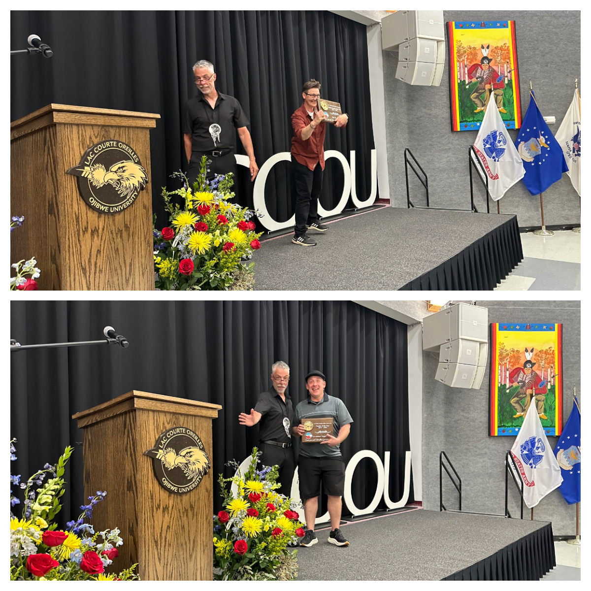 Congratulations to Dr. Michael “Migizi” Sullivan for receiving Faculty of the Year Award and to TRiO Assistant Director Mary Revoy Lopez for receiving Adjunct Faculty of the Year Award at the 2024 Student Awards Banquet. We celebrated their hard work and accomplishments, as well as those of our students’, with a banquet on Friday, May 17.