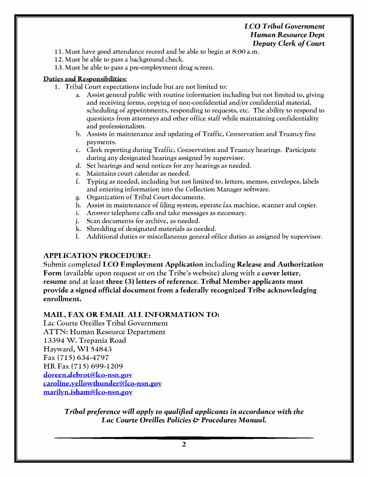 All enrolled members of the Lac Courte Oreilles Tribe are encouraged to make sure your address is up to date in the LCO Citizenship Services office! Be sure your address is current since too much mail is being returned due to incorrect addresses. Check that your family members are updated as well. Also, contact the office if you have a death in the family. Please call Tiera at 715-558-7459 or Harmoni at 715-558-7429 to get your addresses updated right of way. Miigwech!