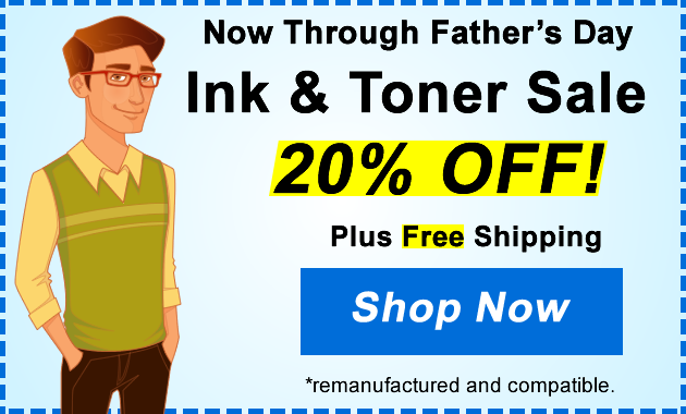20% off all orders of remanufactured and compatible inkjet and toner cartridges. Please note that this sale does not apply to OEM (original equipment manufacturer) products. Free shipping to US, US territories, APOs, and US Embassies. All other international shipping will be subject to a shipping charge. Use promo code "DadsGreat" on the checkout page if a sale does not activate when you arrive on the site.