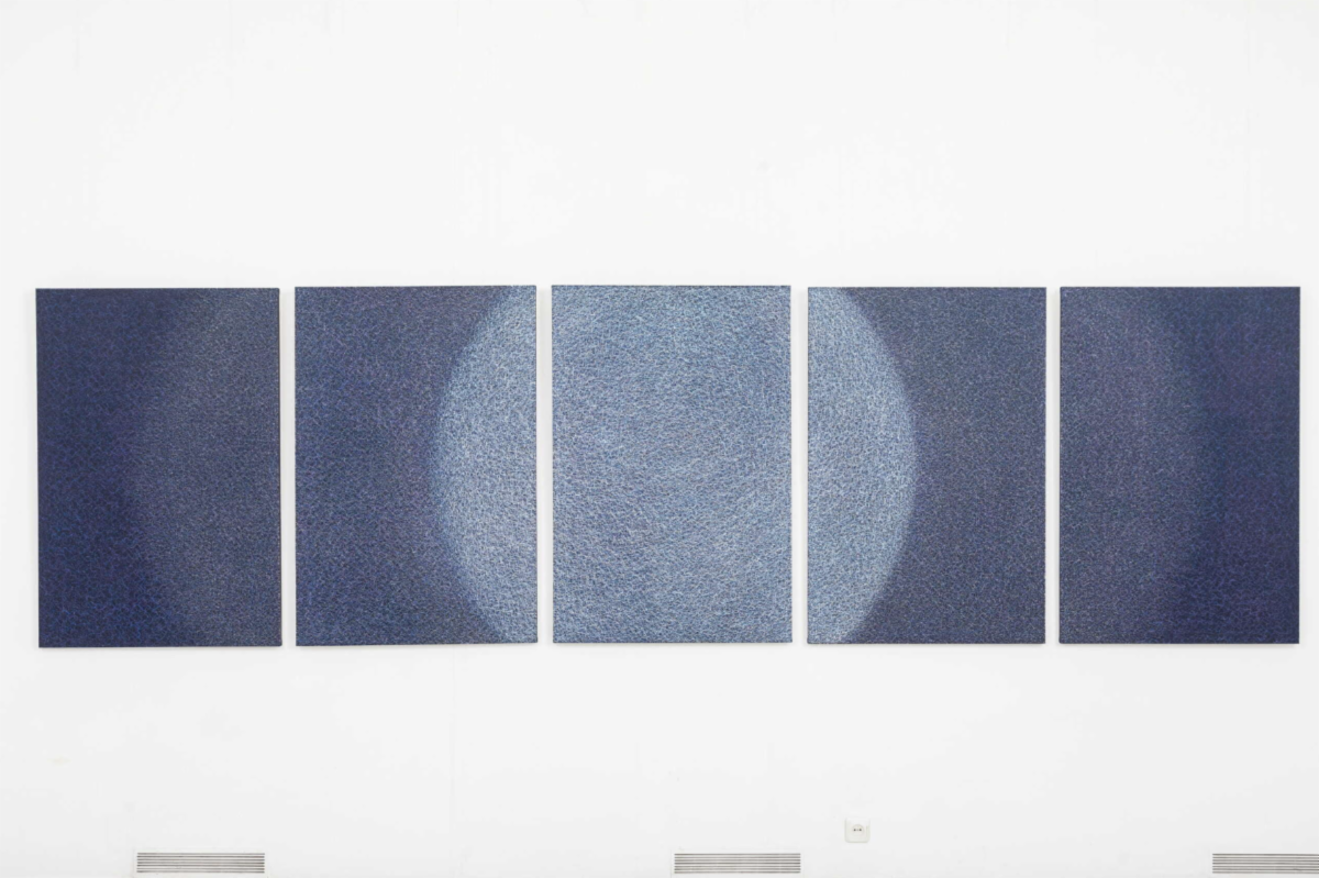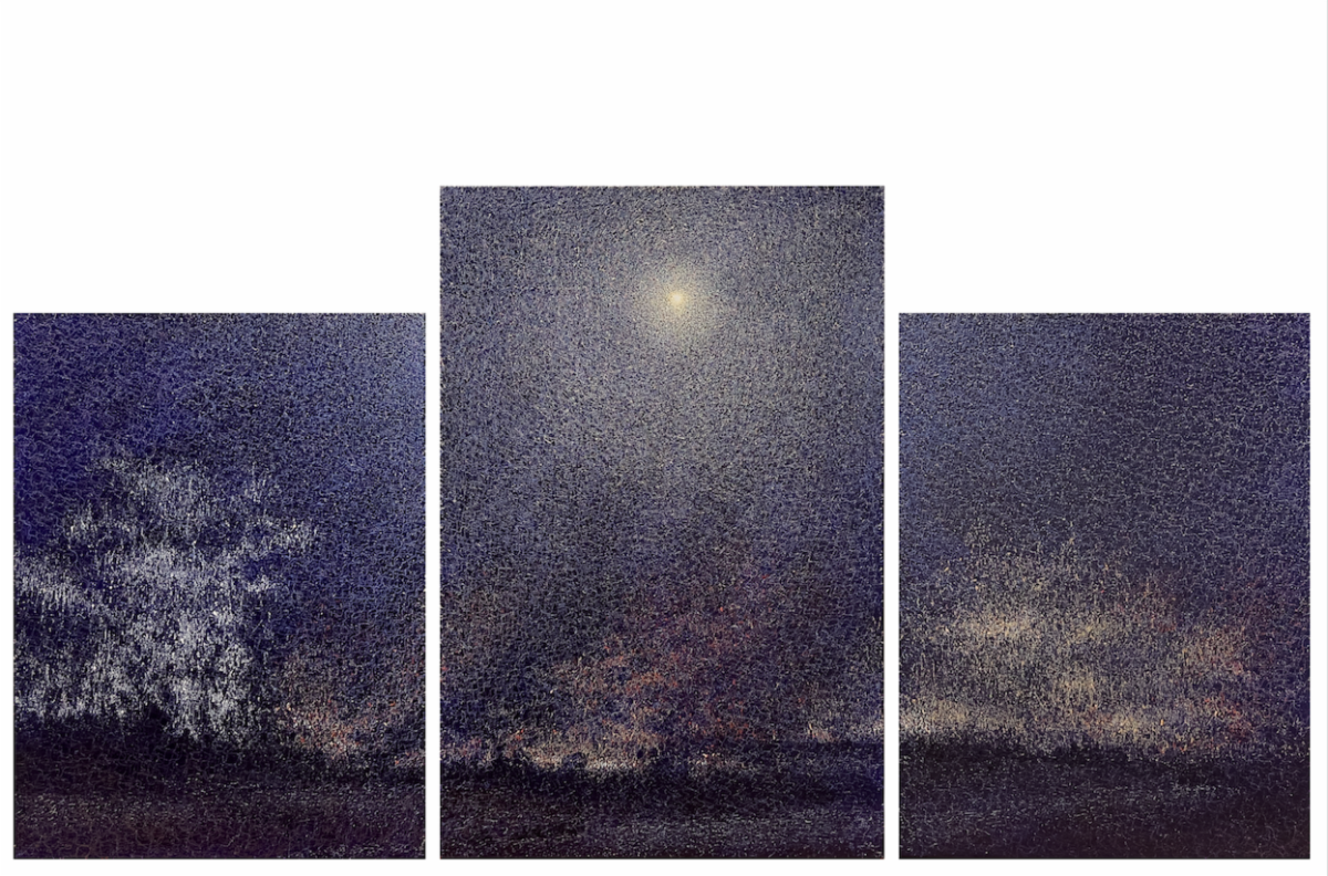 Olena Mosiyevych, The Age of Melancholy, 2021, Acrylic on canvas, Polyptych, 47 x 157 inches, $12,000 | |