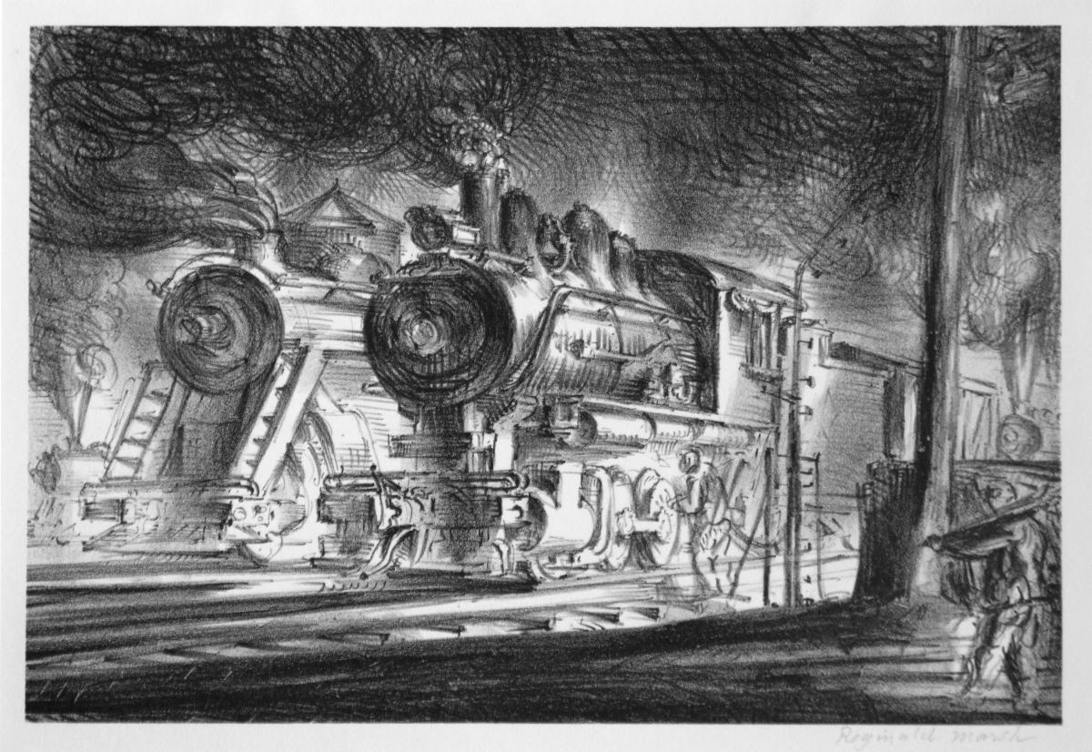 Reginald Marsh, Switch Engines, Erie Yards, Jersey City, Stone No. 3, 1947, Lithograph, 9 x 13.25 inches, $2,800 | |
