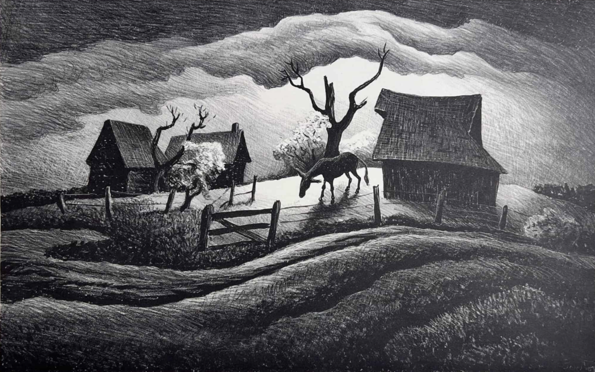 Iconic paintings, such as “Tornado Over Kansas” and “Baptism in Kansas”, will be featured in the exhibition alongside other notable works loaned from The Cincinnati Art Museum, The Nelson-Atkins Museum of Art, The Saint Louis Art Museum, The Sheldon Museum of Art, The Syracuse University Art Museum, The Whitney Museum of American Art, and Kiechel Fine Art.