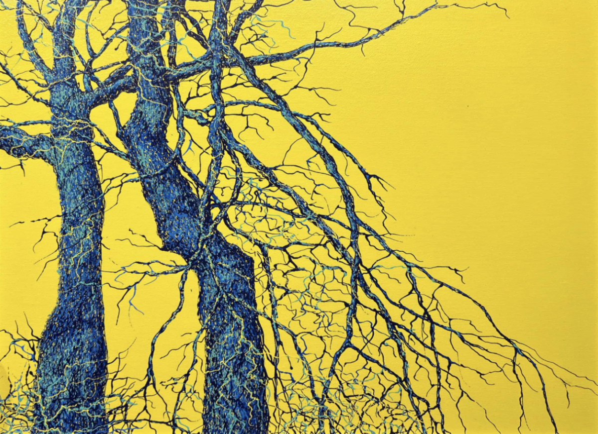 "This series presents trees as a symbol of stability, protection, and rooting within my new homeland. I explore how Ukrainian sensibility interacts with the American landscape."