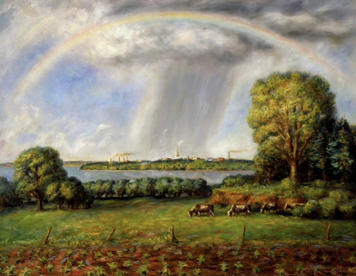 John Steuart Curry, Rainbow and View of Madison, 1937, Oil on panel, 36.5 x 48 inches, POR